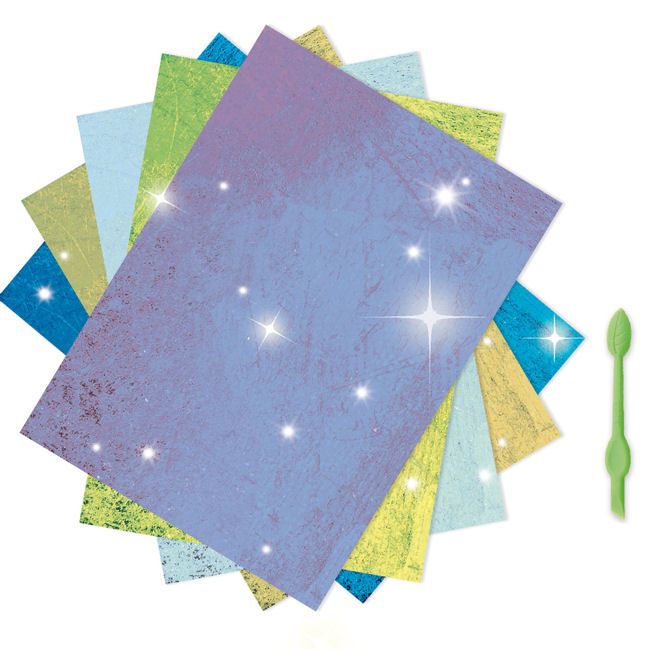 Peel away the covering layer, place the foil sheet over the sticky area and rub with the special tool. Then lift off and hey presto the foil has stuck to the image. A thoroughly absorbing art activity toy ideal for children ages 7 to 13 years old.
