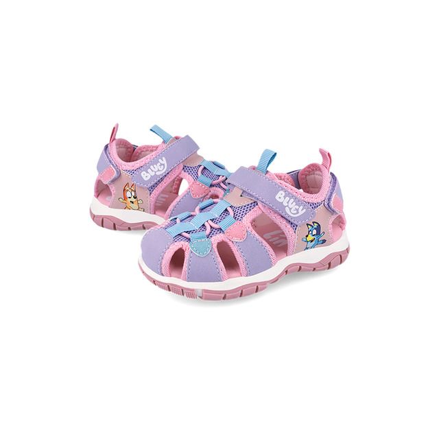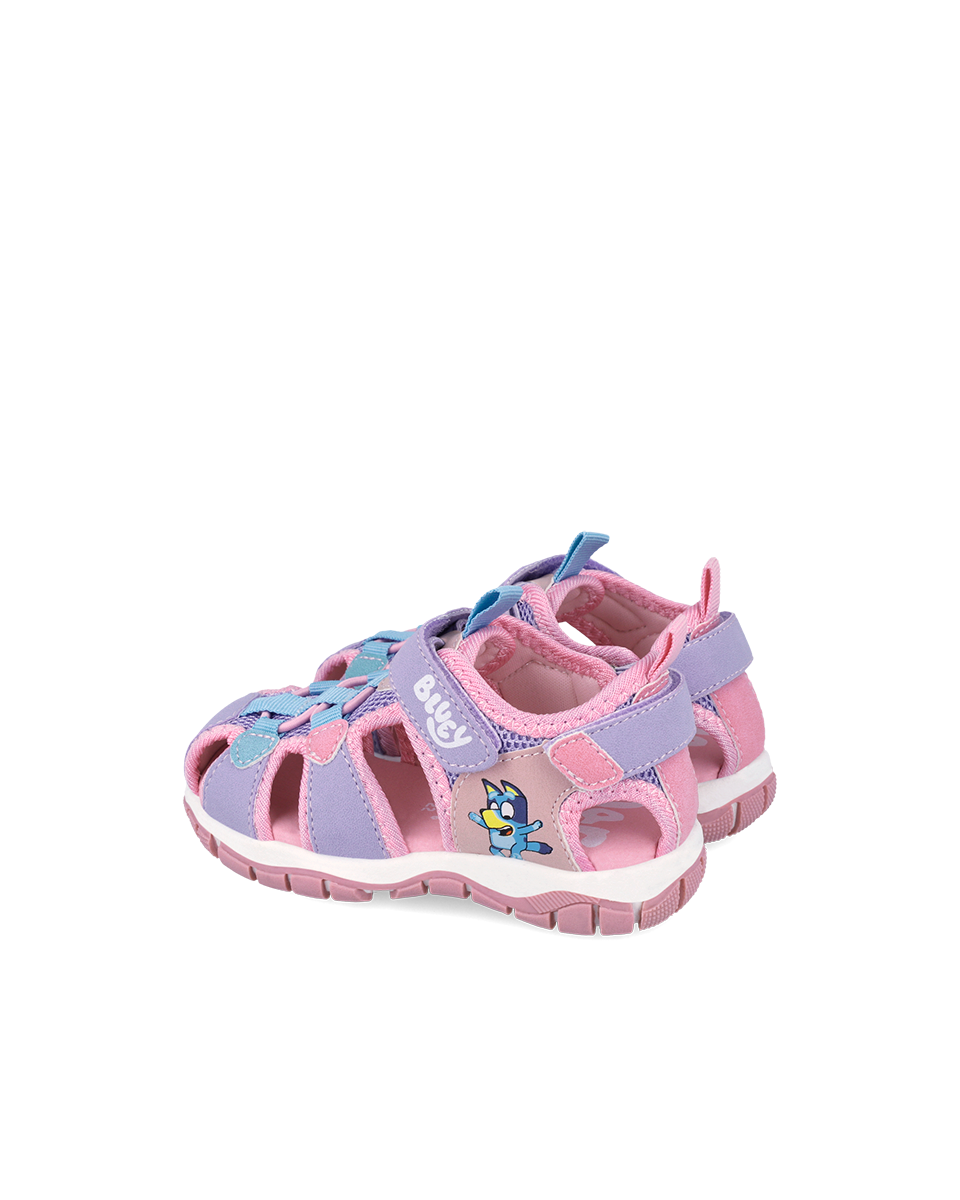 Fun, supportive and perfect for little adventures, the Garvalin 262858-B032 covered-toe sandals in pink and lilac with Bluey detail combine breathable comfort, toe protection and a flexible sole — ideal for active summer days.
