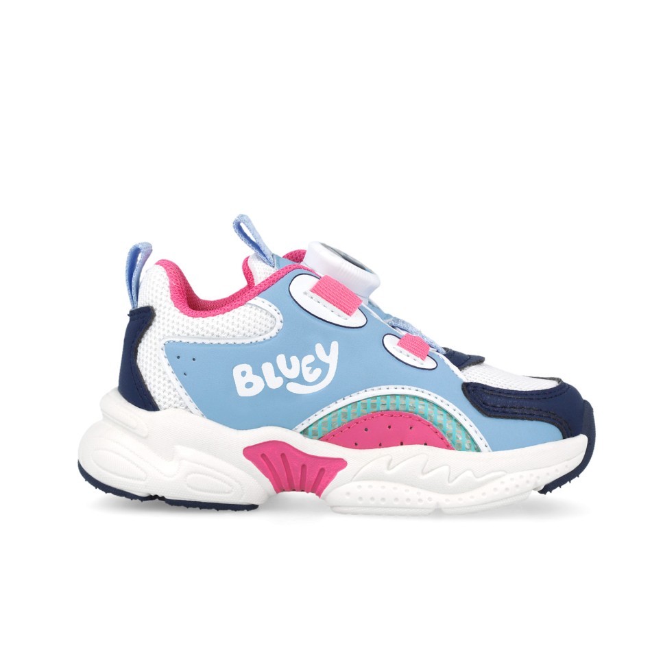 Lightweight trainers in blue and fuchsia featuring Bluey. Simple twist lock closure.