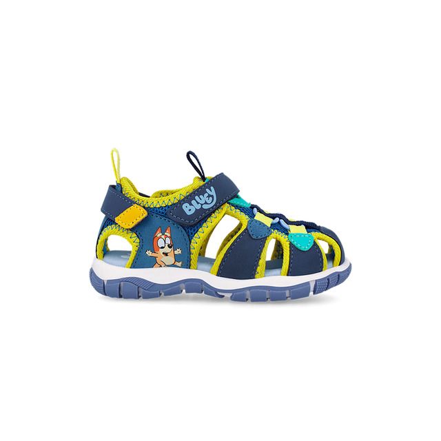 Fun, supportive and perfect for little adventures, the Garvalin 262858-A008 covered-toe sandals in blue and yellow with Bluey detail combine breathable comfort, toe protection and a flexible sole — ideal for active summer days.