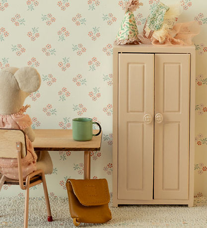 Beautiful Maileg miniature cabinet in a dusty pink shade. The cabinet has two doors with fine details and small knob handles with a floral pattern, which makes it easy to open.