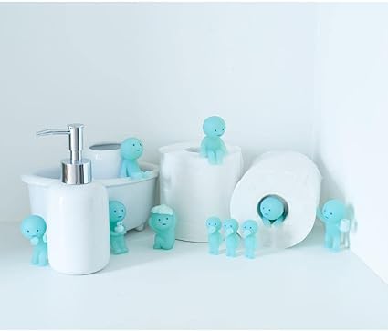 • Smiski Toilet Series cute phosphorescent aka “glow in the dark” Figures/ creatures that hide around toilet; Smiski peek-a -boo, Smiski little (smelly), Smiski Helping out, Smiski resting and Smiski holding in.